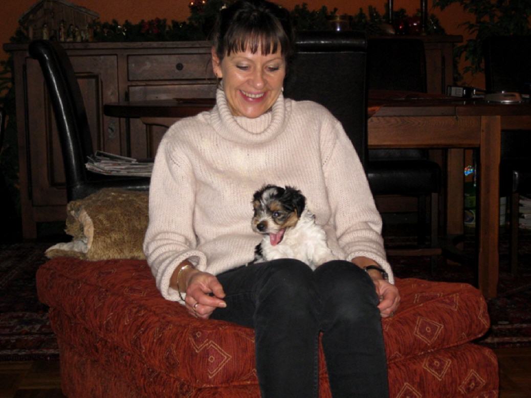 Frau Wienke aus Mölln besaß vorher einen Briard (Großrasse mit viel Fell) und wünschte sich nun einen ebenso charakterstarken Hund mit langem, nicht haarendem Fell - halt nur deutlich kleiner damit man ihn überall mit hinnehmen kann. Es sollte aber um Gottes Willen auch kein Miniaturhund sein!