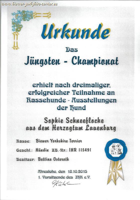 Baby-, Jüngsten-, Junghund- und Internationales Championat.