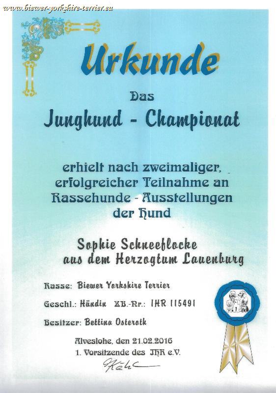 Sophie Schneeflocke ist das Spiegelbild ihrer mit vielen Preisen ausgezeichneten Mutter 'Klara vom alten Turm'.