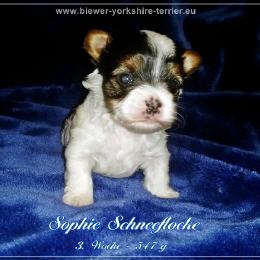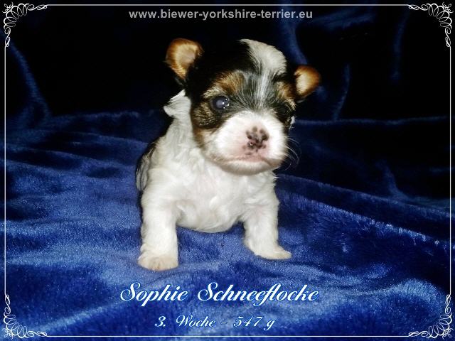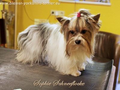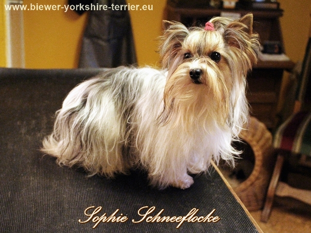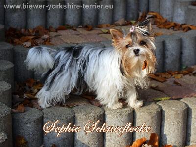 Vom Wesen ist diese kleine Biewerhündin sehr anhänglich und keinesfalls dominant. Sophie ist außerordentlich aufmerksam, gelehrig und kann sich ausgezeichnet mit sich selbst beschäftigen. Außerdem ist sie folgsam, was heißt, dass sie sich z. B. beim Spazierengehen ohne Leine niemals außer Sichtweite begibt.