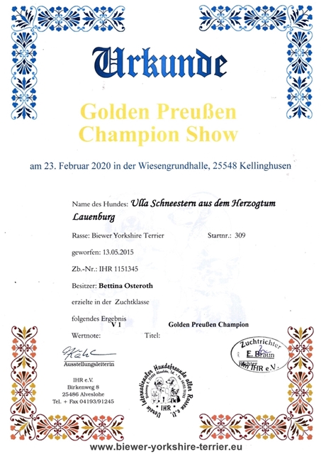 23.02.2020 - Golden Preußen Champion - Wertung: Vorzüglich 1