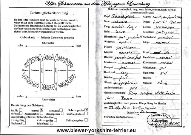 Da Ulla beste Qualitäten vorweist, haben wir sie auf Zuchttauglichkeit prüfen lassen.